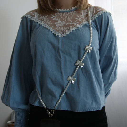 Crossbody Phone Strap - Anti Phone Theft - Long Phone Lanyard ''Dear Darling'' Pearl Bow