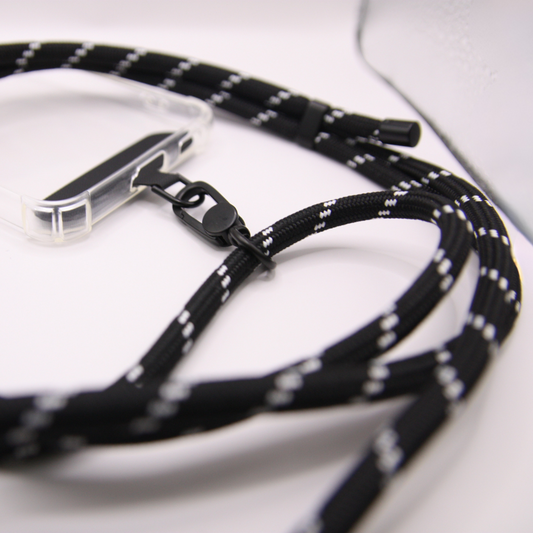 Crossbody Phone Strap - Anti Phone Theft - Long Phone Lanyard Black and White Stripes ''Essential''