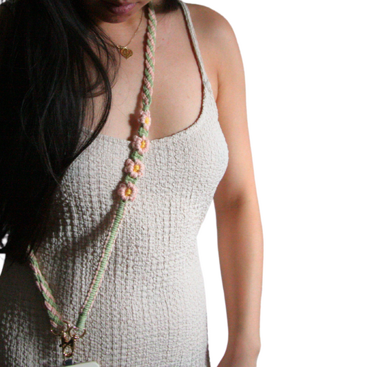 Crossbody Phone Strap - Anti Phone Theft - Long Phone Lanyard ''Dear Darling'' Flora Pink