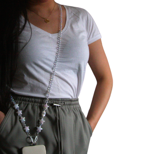 Crossbody Phone Strap - Anti Phone Theft - Long Phone Lanyard ''S&G'' Pretty Pearl