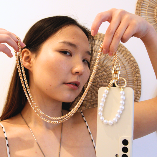 Crossbody Phone Strap - Anti Phone Theft - Long Phone Lanyard ''S&G'' Sea of Pearls Golden